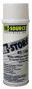 White Lithium Grease Garage Door Gate and Operator lubricant Our Garage Door, Gate and Operator lubricant is white lithium grease in a convenient, easy to use aerosol can. In addition, this P.T.F.E. fortified, durable, nonstaining lubricant provides superior friction reduction between similar or different materials than other lubricants. Will not run, wash off, or freeze and does not gum up or cake on applied surfaces. RS-1000 is a professional grade product for use on all moving parts found on residential, commercial and industrial garage doors, gates and electrical operators, including, rollers, hinges, bearings, springs, cables, roller chain, locks, latches, etc. This next generation product is formulated without chlorinated solvents or ozone depleters.